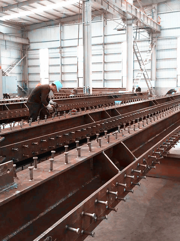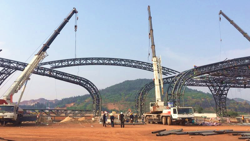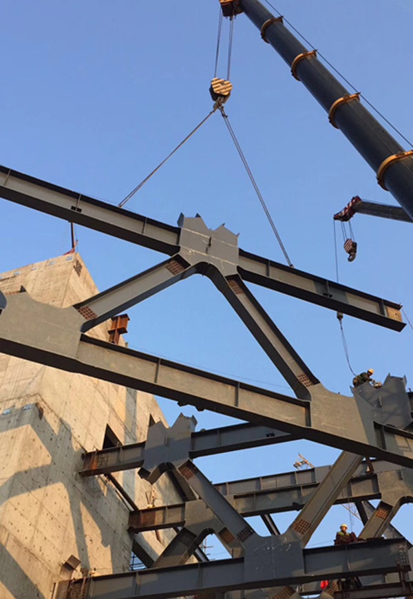 結(jié)構(gòu)主要由型鋼和鋼板等制成的梁鋼、鋼柱、鋼桁架等構(gòu)件組成,并采用硅烷化、純錳磷化、水洗烘干、鍍鋅等除銹防銹工藝。各構(gòu)件或部件之間通常采用焊縫、螺栓或鉚釘連接。因其自重較輕,且施工簡(jiǎn)便,廣泛應(yīng)用于大型廠(chǎng)房、場(chǎng)館、超高層等領(lǐng)域。
